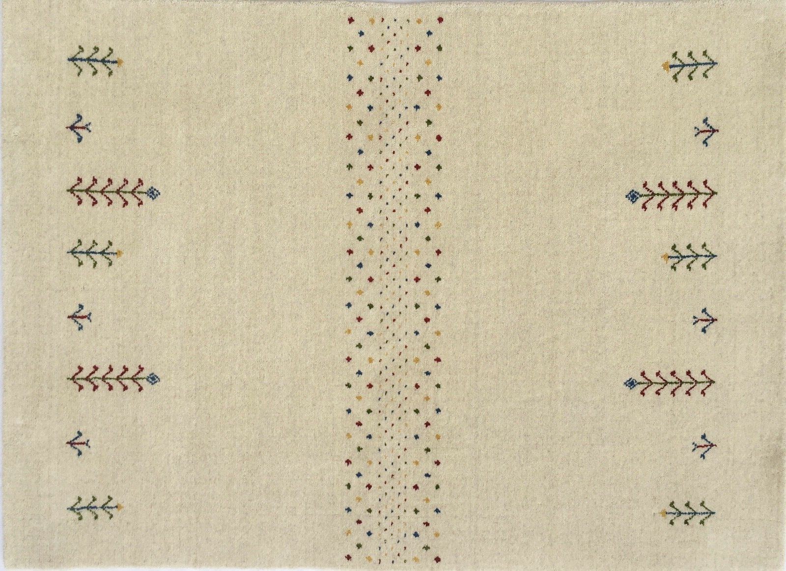 Ręcznie tkany dywan z Indii Lori (Gabbeh Handloom) gładki beżowy, z deseniem, z etnicznymi wzorami - tribal 200x300cm
