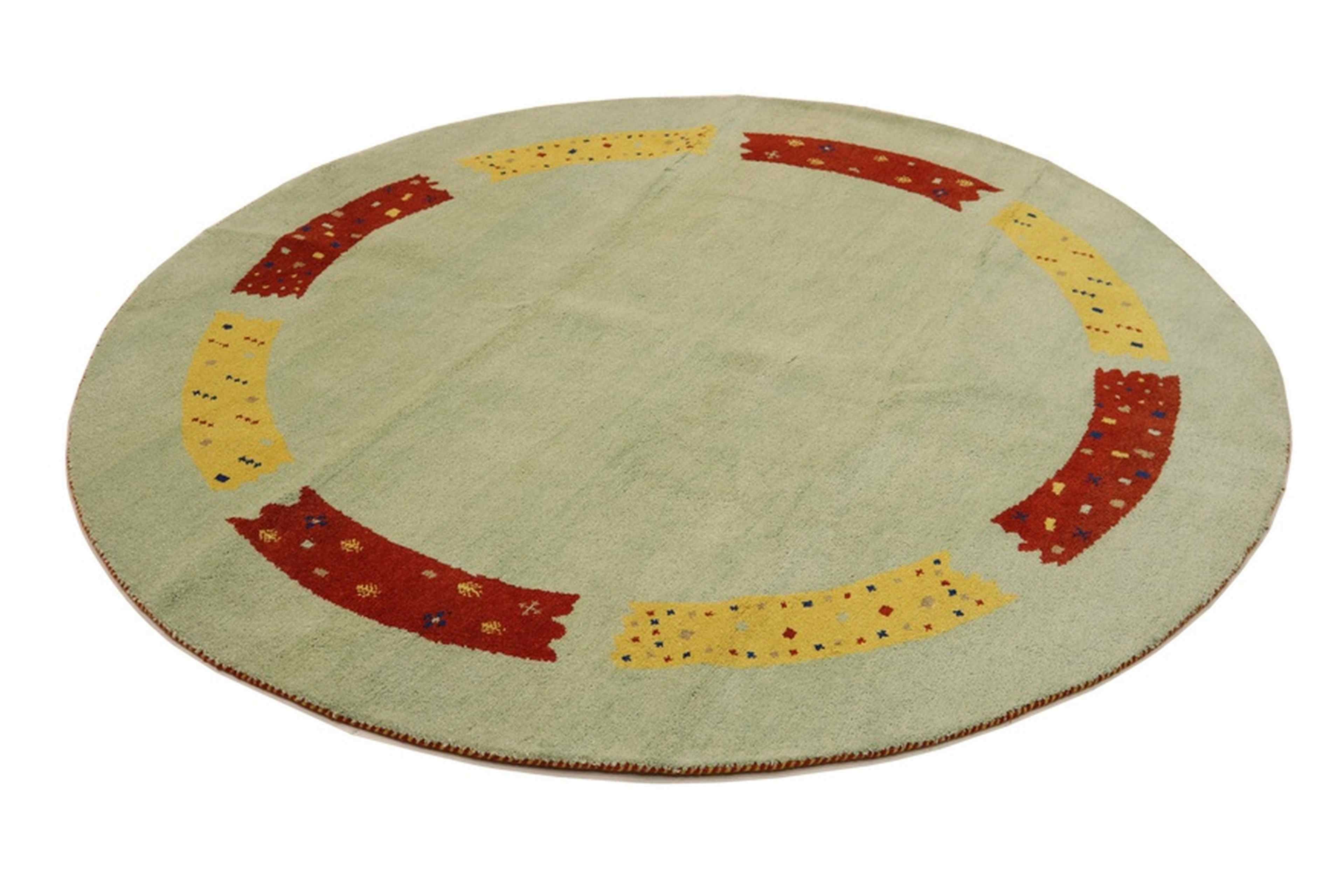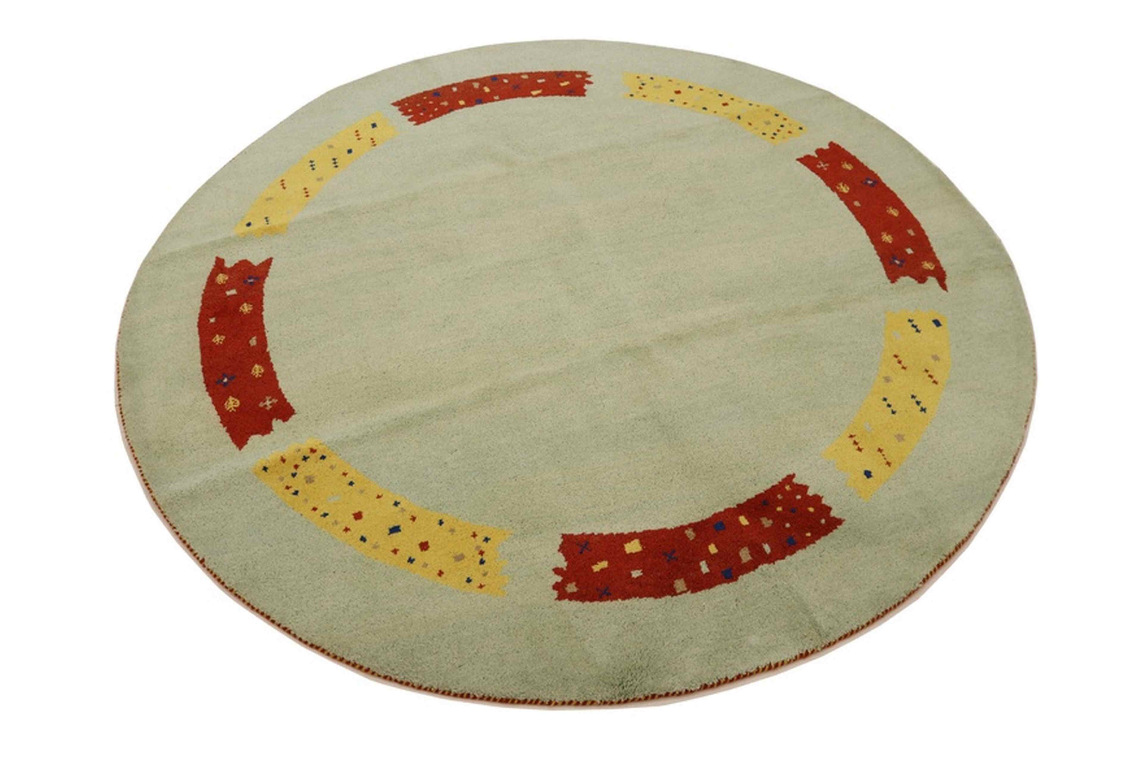 Ręcznie wiązany dywan Gabbeh z Indii zielony, okrągły nowoczesny ok 250x250cm