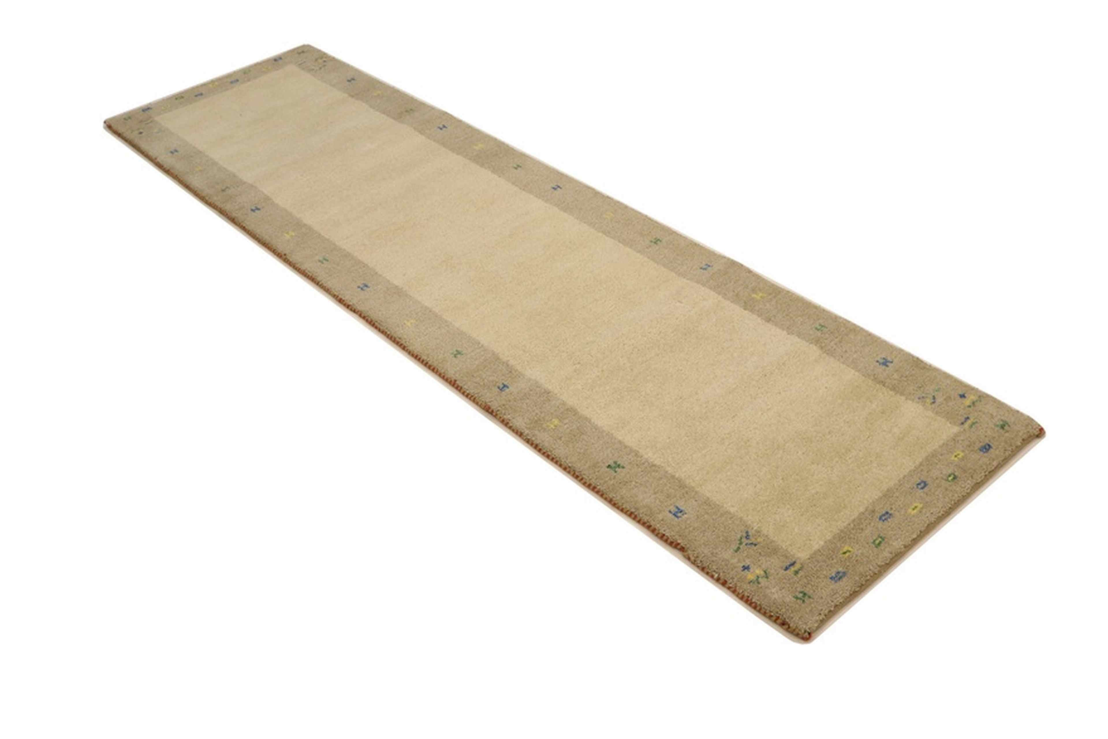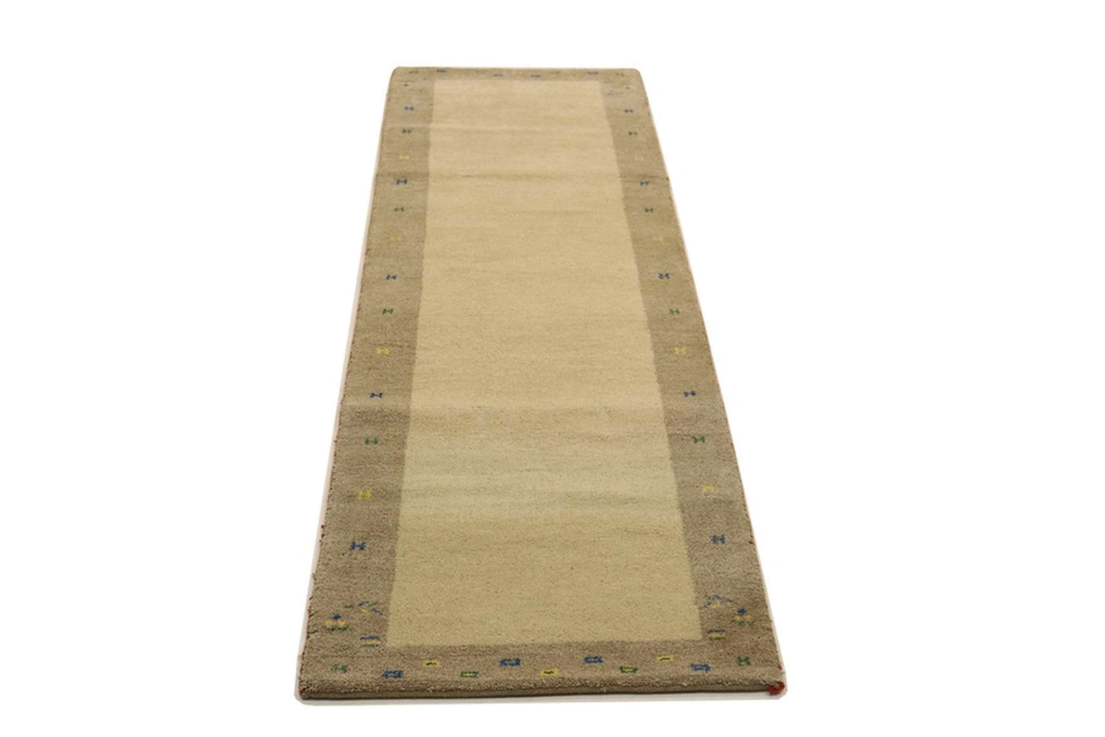 Ręcznie tkany dywan Gabbeh z Indii beżowy chodnik, delikatny, etniczny, prosty wzór 80x300cm